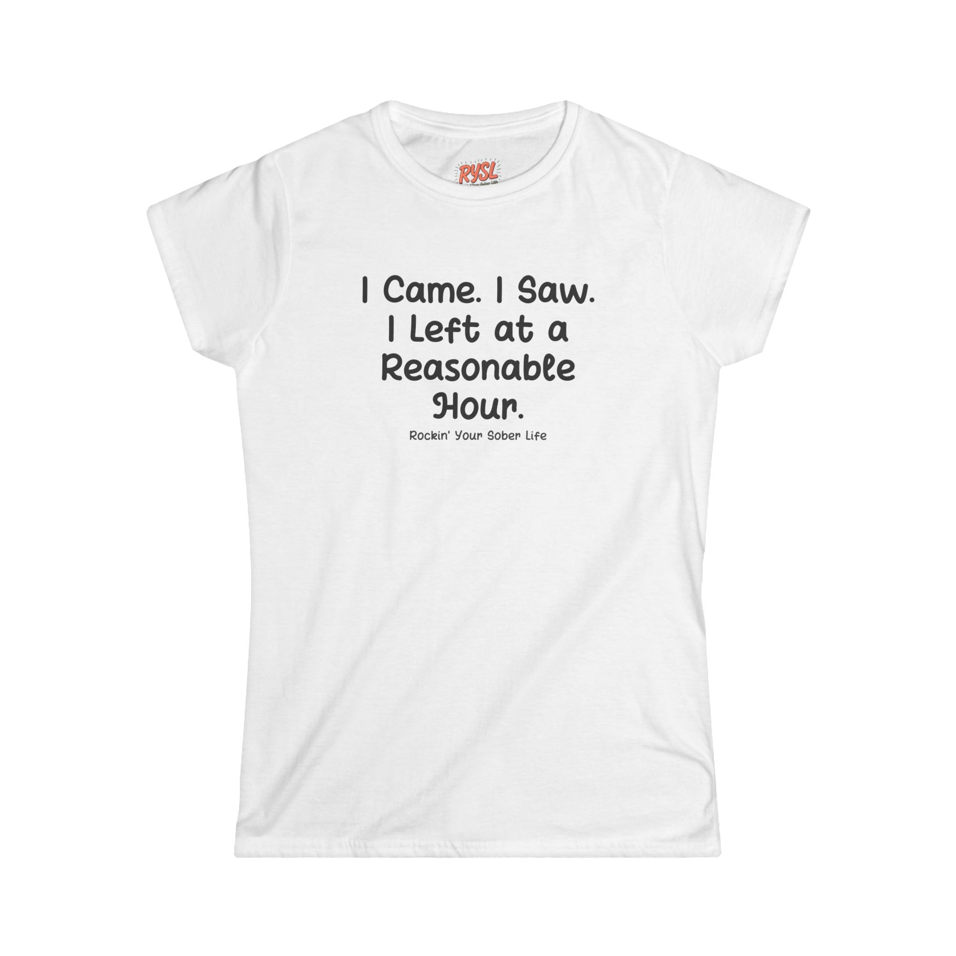I Came. I Saw. I Left at a Reasonable Hour Women's Tee – Rockin’ Your Sober Life